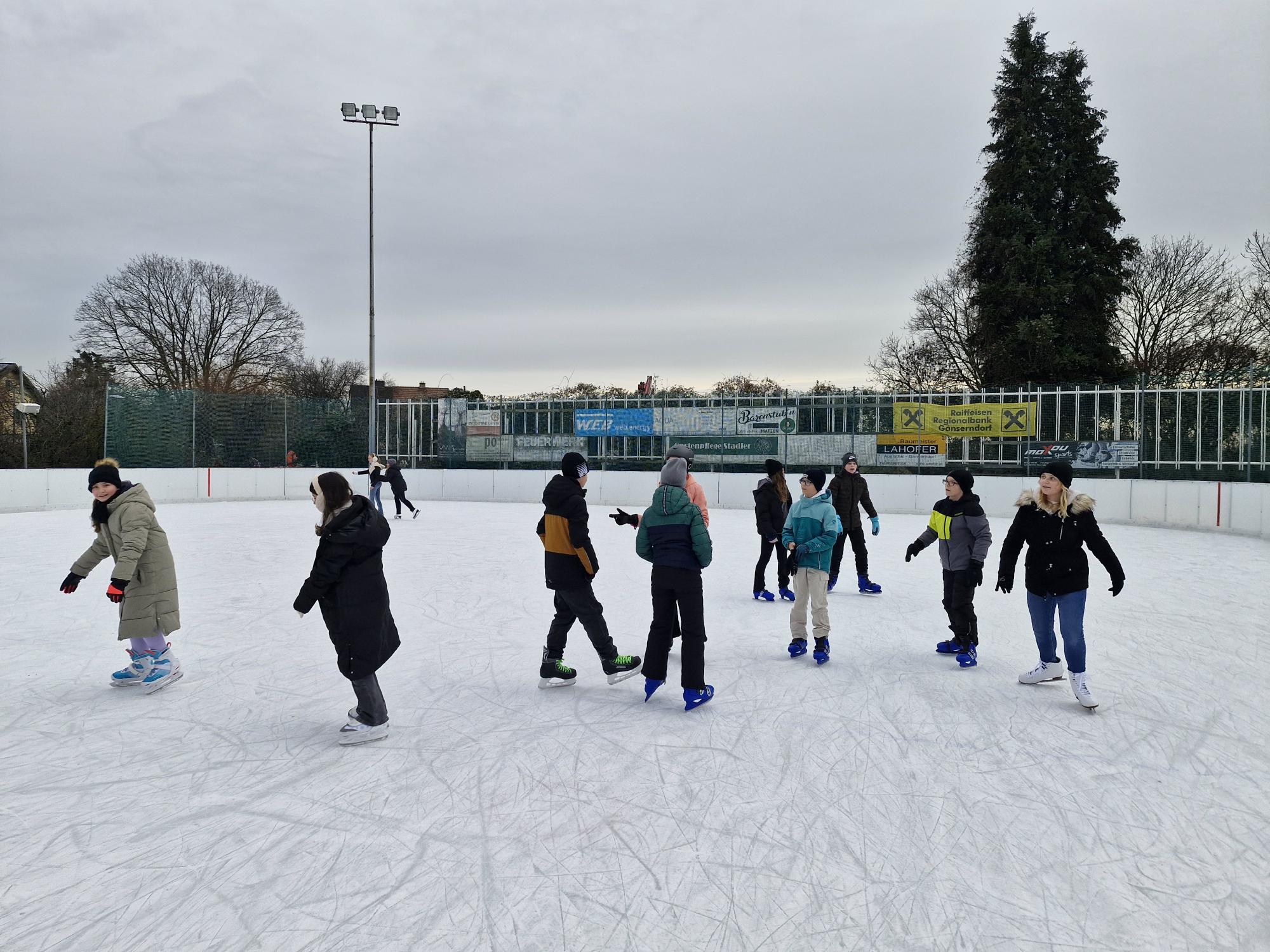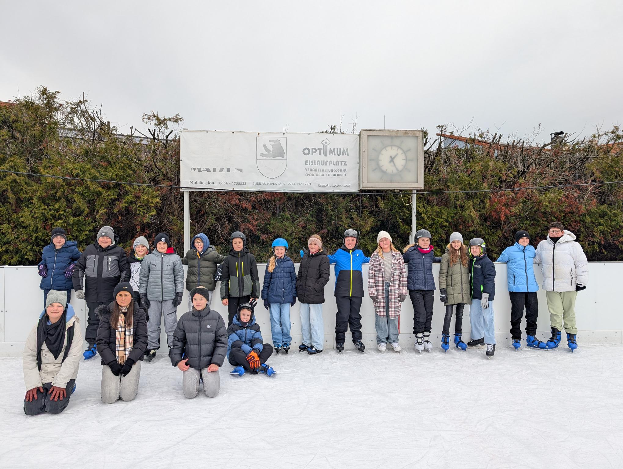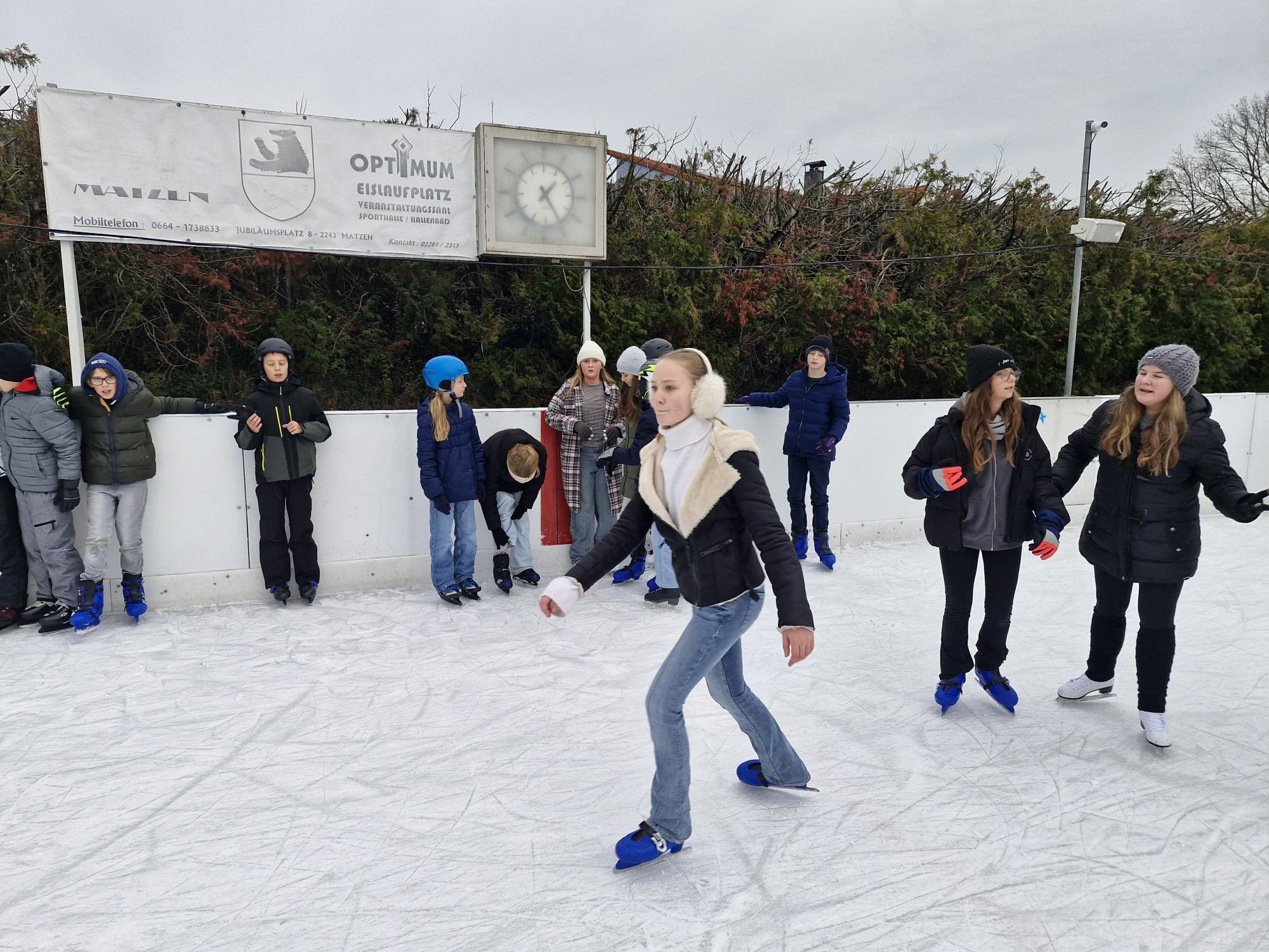 Eislaufen 2.und 3. Klassen Am 11.12.2025 und 12.12.2025 konnten die 2. und 3.Klassen ihr Können am Eis in Matzen unter Beweis stellen.