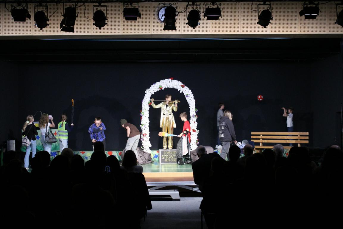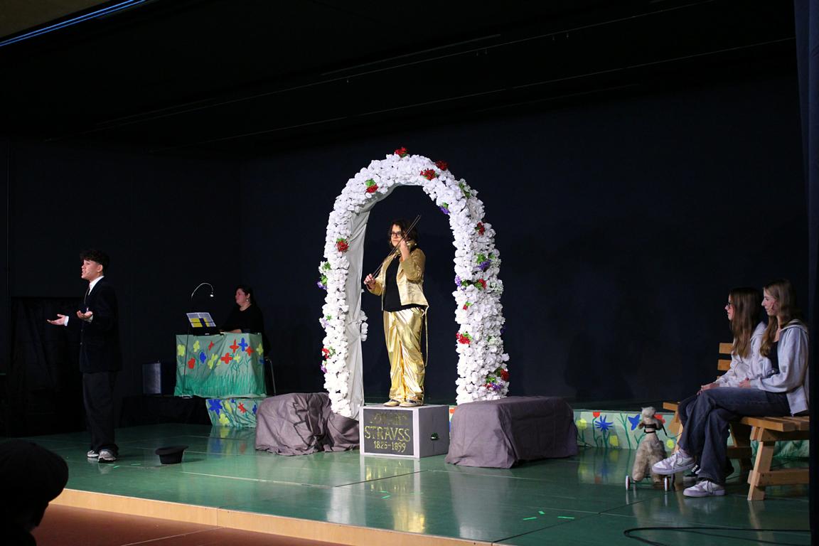 Am Mittwoch, den 26., und Donnerstag, den 27. November begeisterten die 127 Musikschülerinnen und -schüler wieder einmal ein großes Publikum mit einem sorgfältig einstudierten Musikprogramm, das vom Team der Musiklehrerinnen und -lehrer gemeinsam mit den Schülerinnen und Schülern mit großem Einsatz vorbereitet worden war. Walzer, Polkas und weitere Strauss-Melodien erklangen in frischer Interpretation und wurden mit spürbarer Freude am Musizieren dargeboten. Die rund 1.800 Besucherinnen und Besucher zeigten sich begeistert von der musikalischen Vielfalt und dem bemerkenswerten Niveau der Veranstaltung.