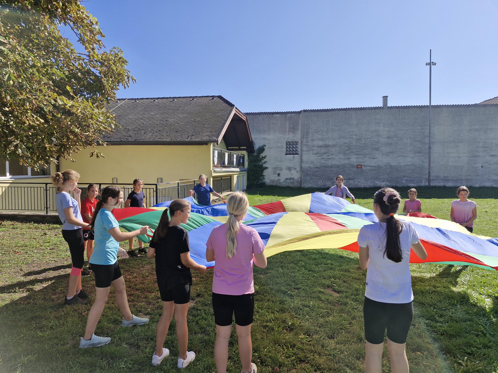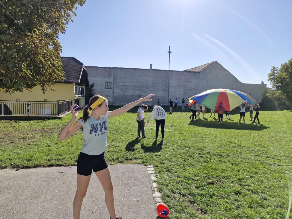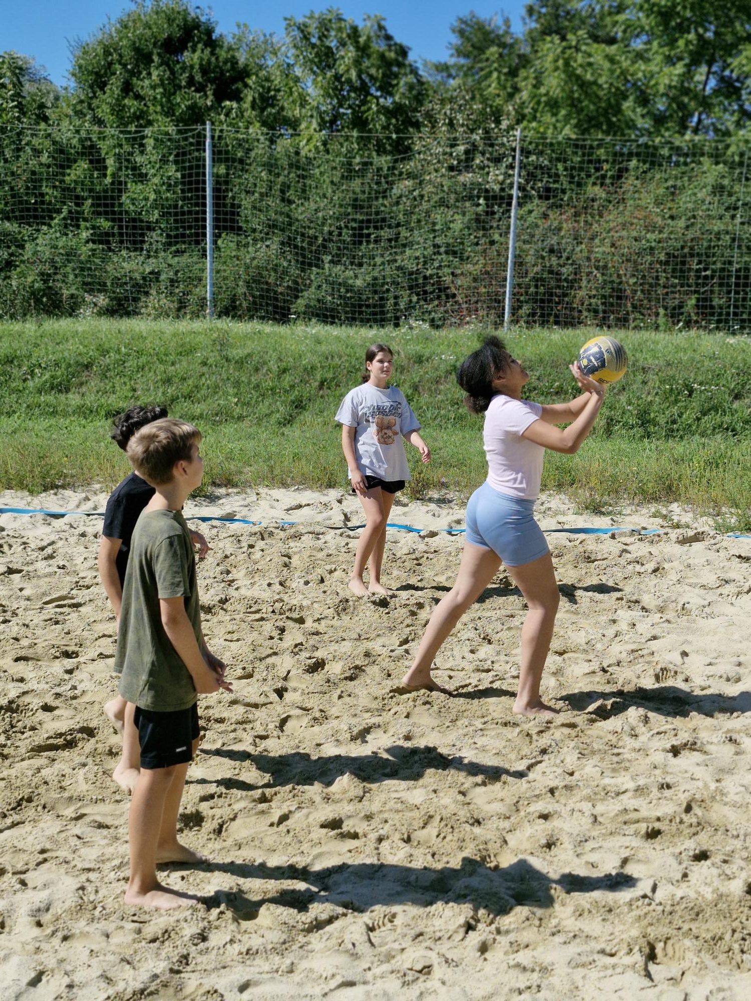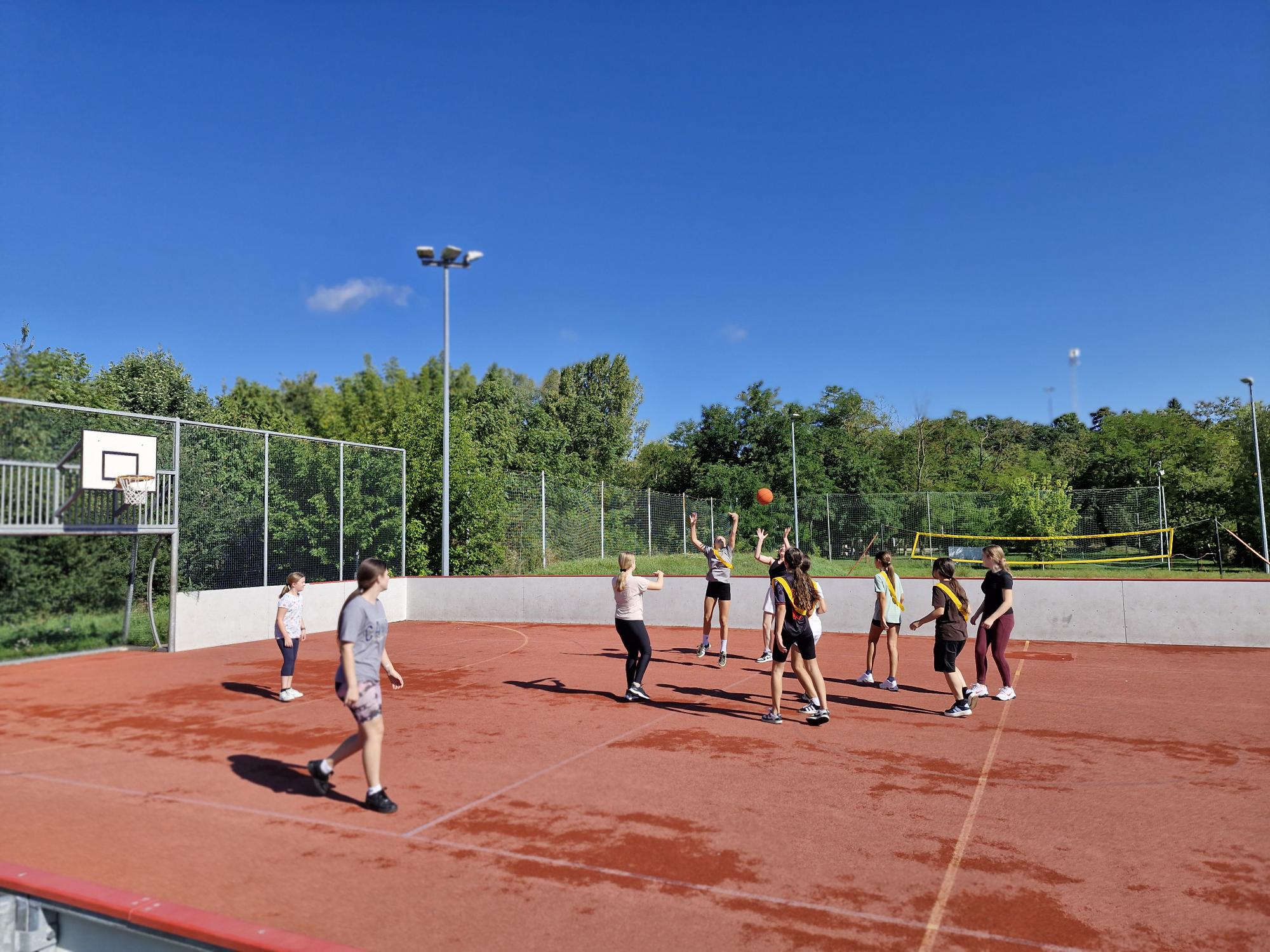 Outdoorsport Das schöne Wetter nutzen die Schüler und Schülerinnen aller Klassen für Beachvolleyball, Basketball, Schlagballwerfen und vielem mehr.