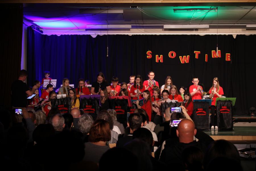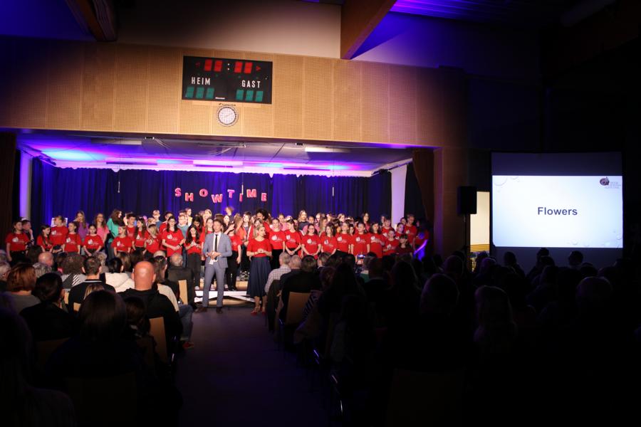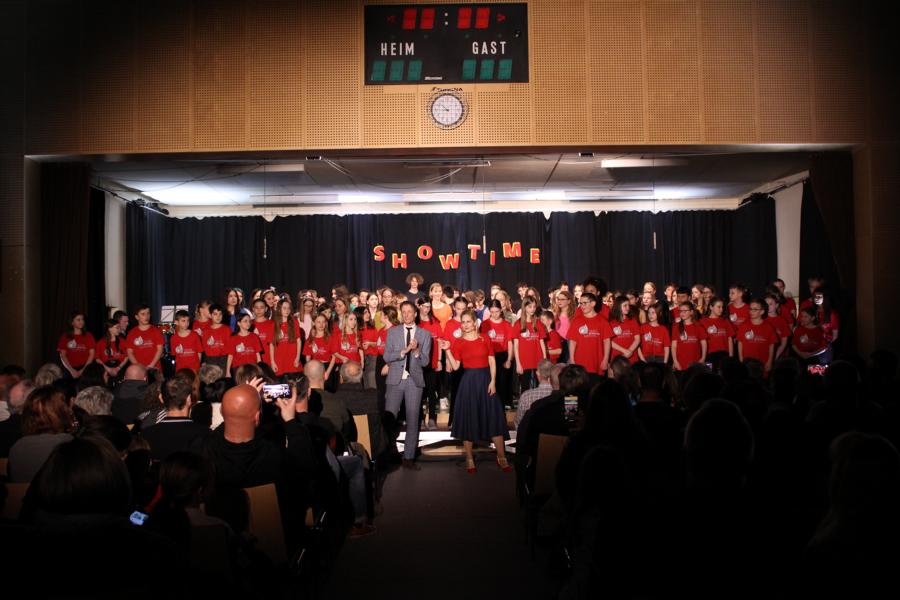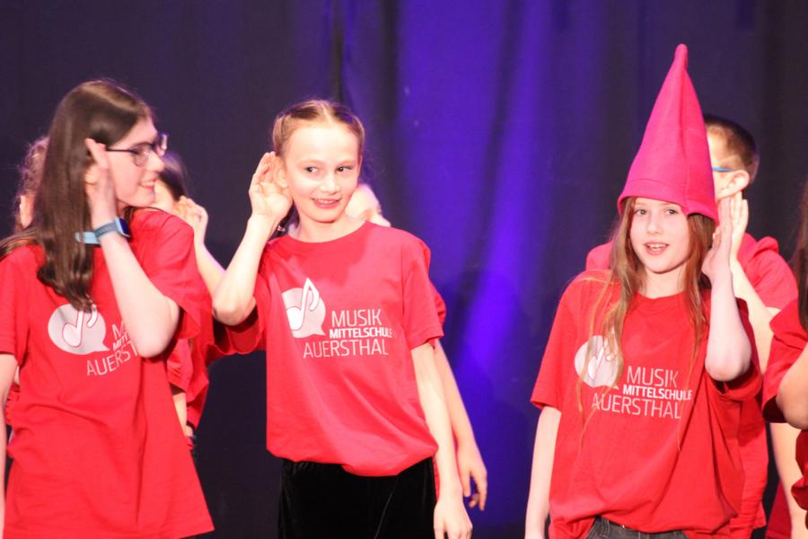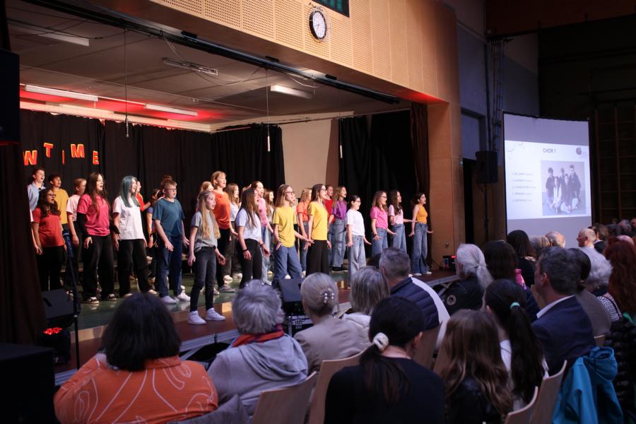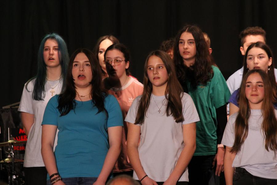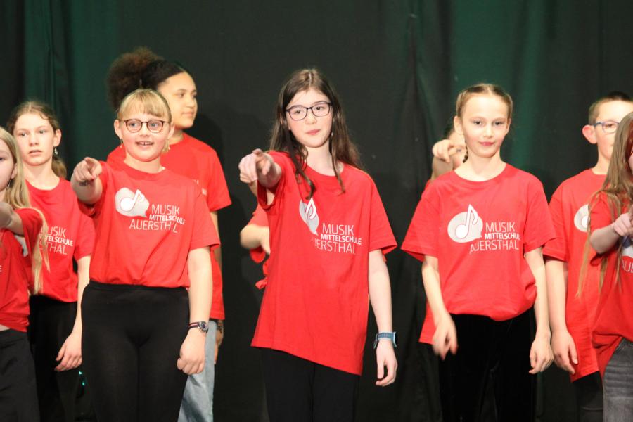 Die 120 Musikmittelschülerinnen und -schüler präsentierten gemeinsam mit dem aus Wolkersdorf stammenden Künstlerduo „Lissi und Herr Timpe“ ein energiegeladenes und abwechslungsreiches Programm aus Gesang, Tanz und Instrumentalstücken, welches zuvor vom Musiklehrerteam der Mittelschule gemeinsam mit den 120 Talenten einstudiert worden war.
