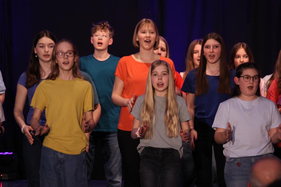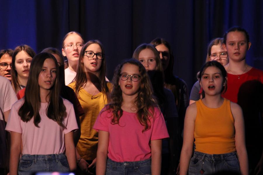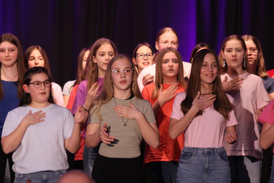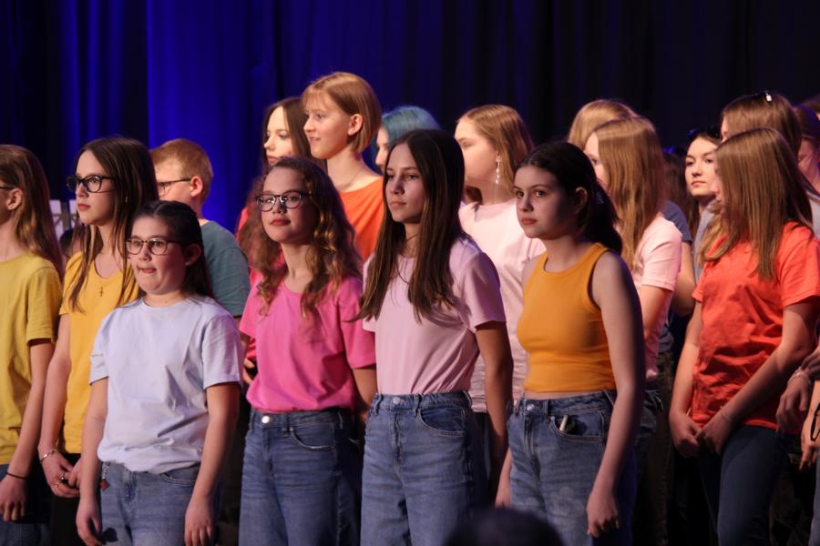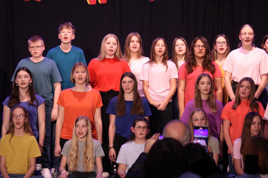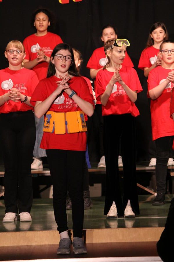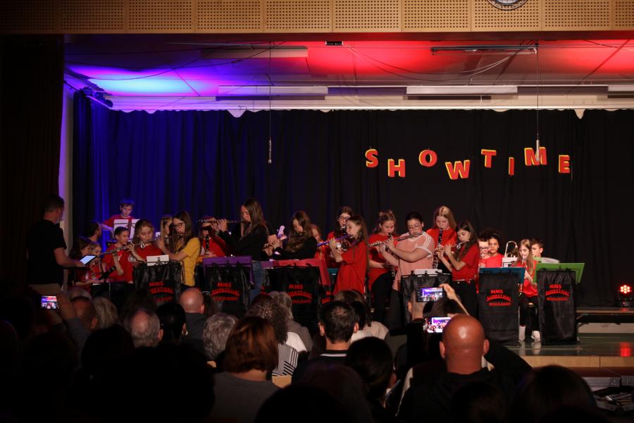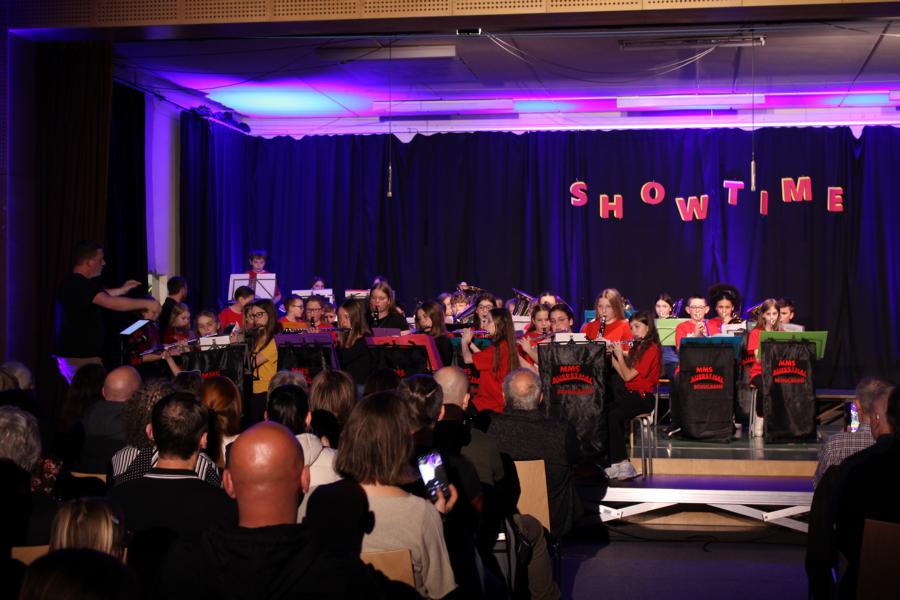 Die 120 Musikmittelschülerinnen und -schüler präsentierten gemeinsam mit dem aus Wolkersdorf stammenden Künstlerduo „Lissi und Herr Timpe“ ein energiegeladenes und abwechslungsreiches Programm aus Gesang, Tanz und Instrumentalstücken, welches zuvor vom Musiklehrerteam der Mittelschule gemeinsam mit den 120 Talenten einstudiert worden war.